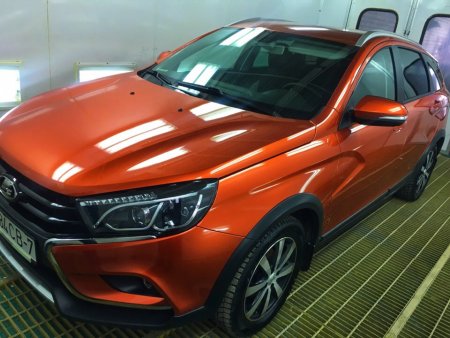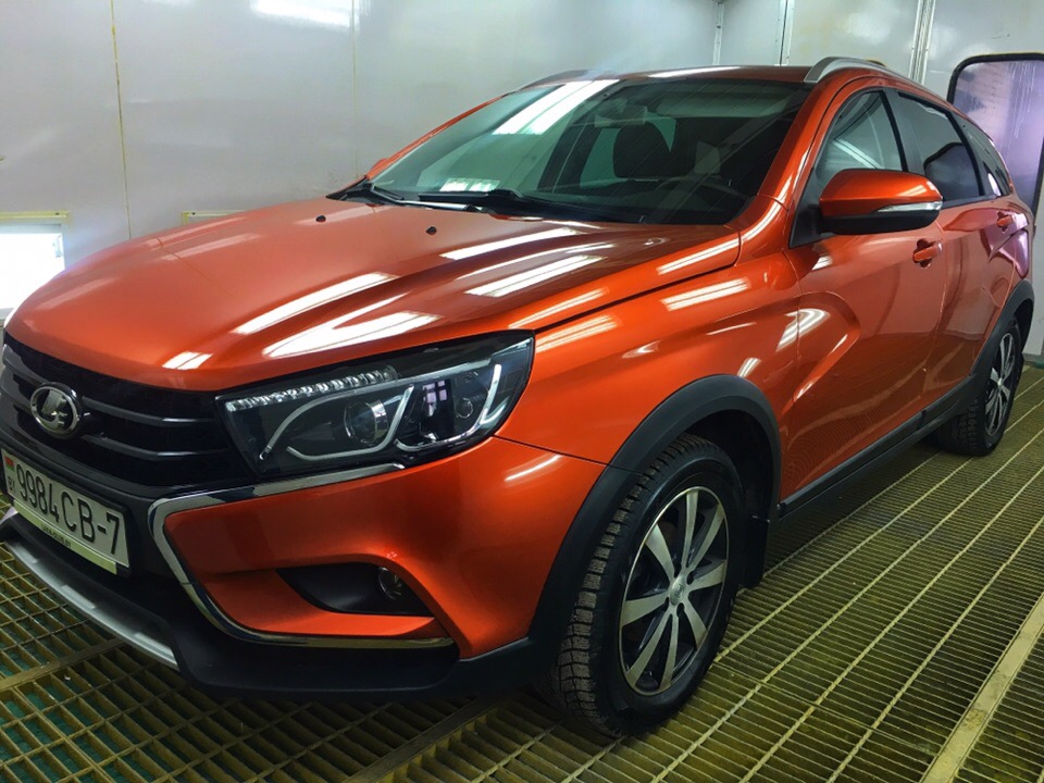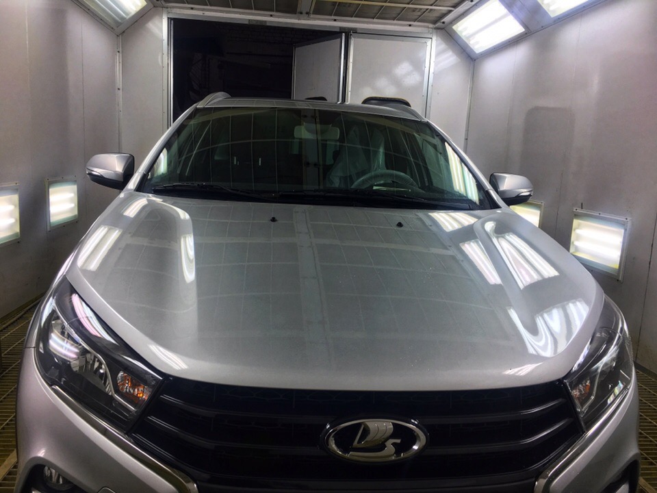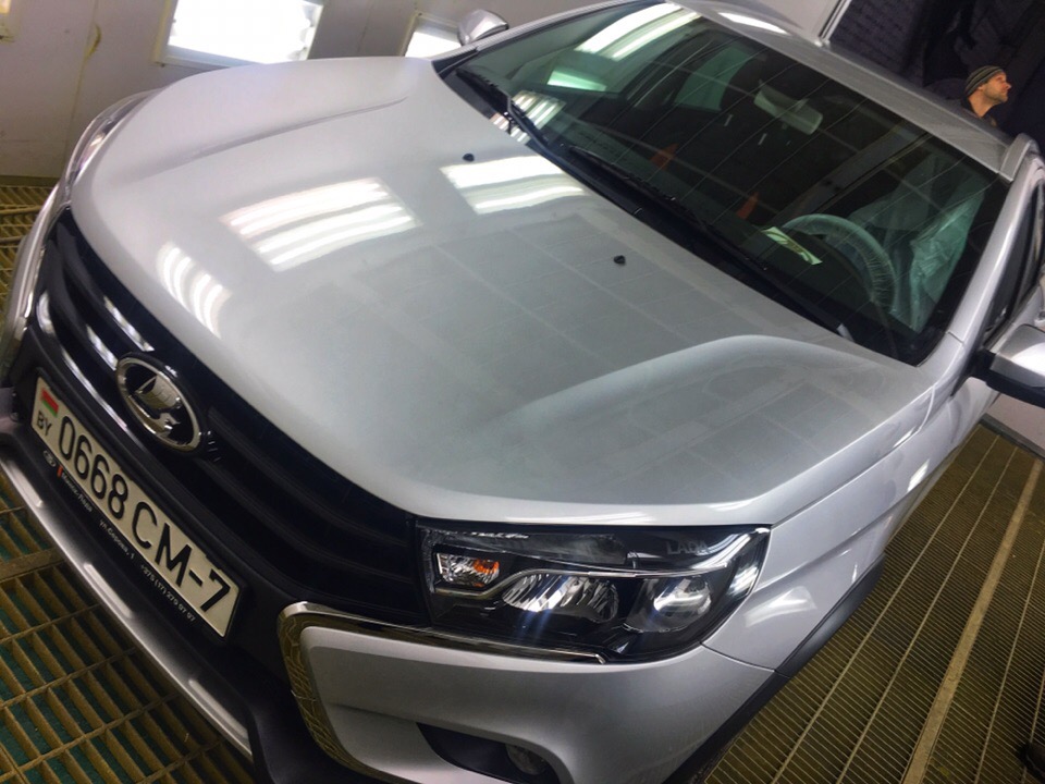Вот, собственно и подходим к главной идее. Наш одноклубник решил свою новенькую Ладу весту СВ Кросс полностью покрыть таким материалом как Жидкое стекло.