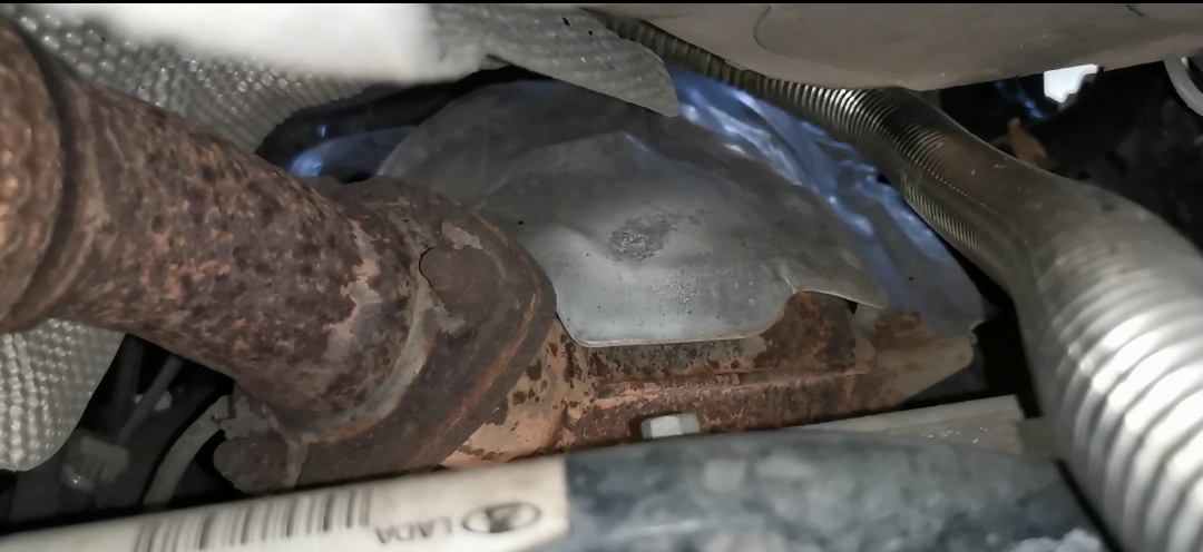 Резонатор крепится к катализатору с помощью трех гаек, шпилька на 8, гайка под ключ на 10. При срывании граней открутить будет очень тяжело из-за ограниченного доступа.