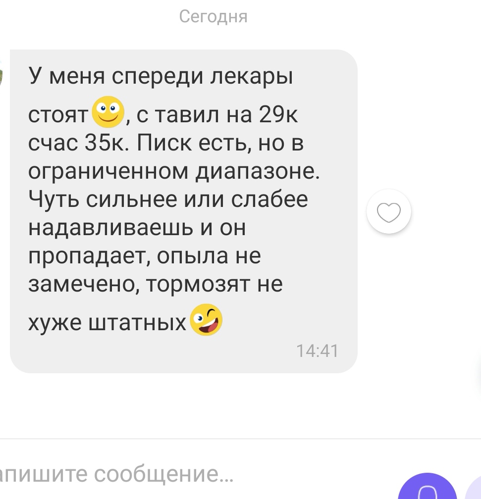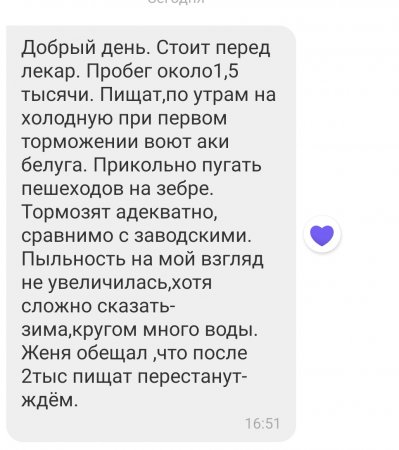 - Писк. И это будет единственный минус. Особенно не приятный звук проявляется при установке на б/у (не новые) тормозные диски. Единственное, чем можно себя успокоить – он проходит в момент притирания колодки к поверхности тормозного диска.