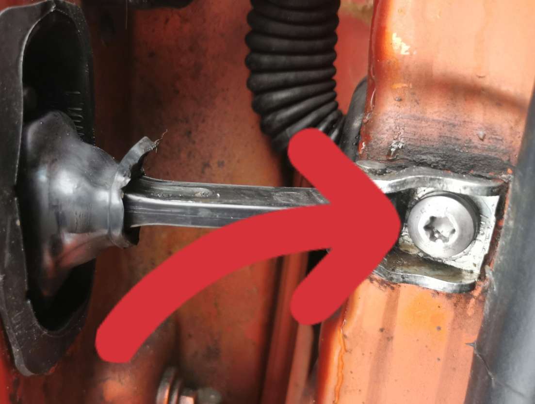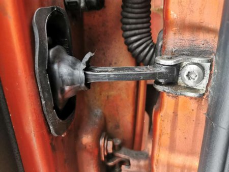 2. Отворачиваем винт, который крепит ограничитель двери к кузову.