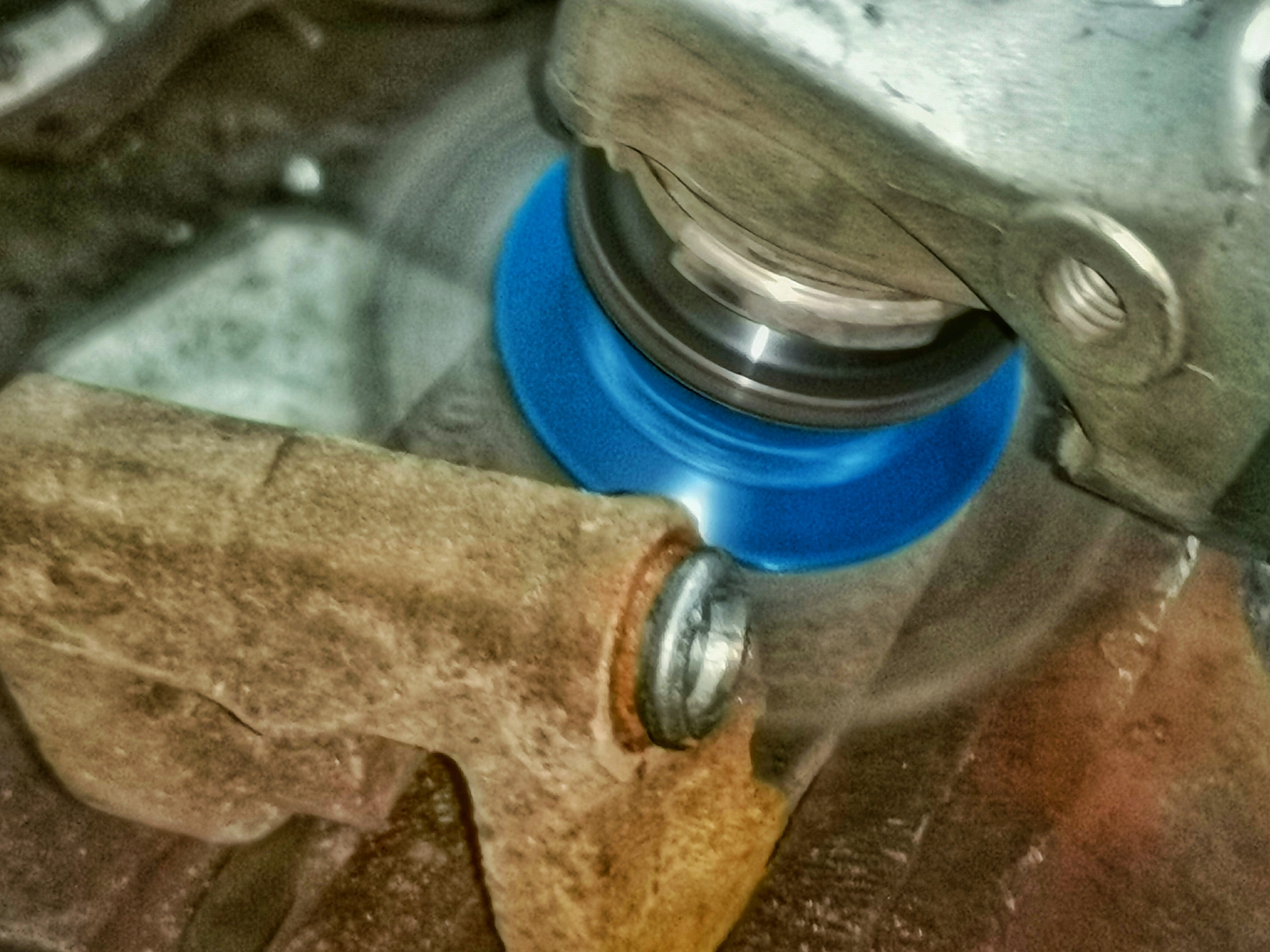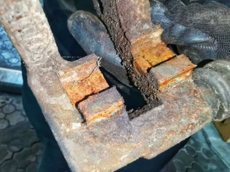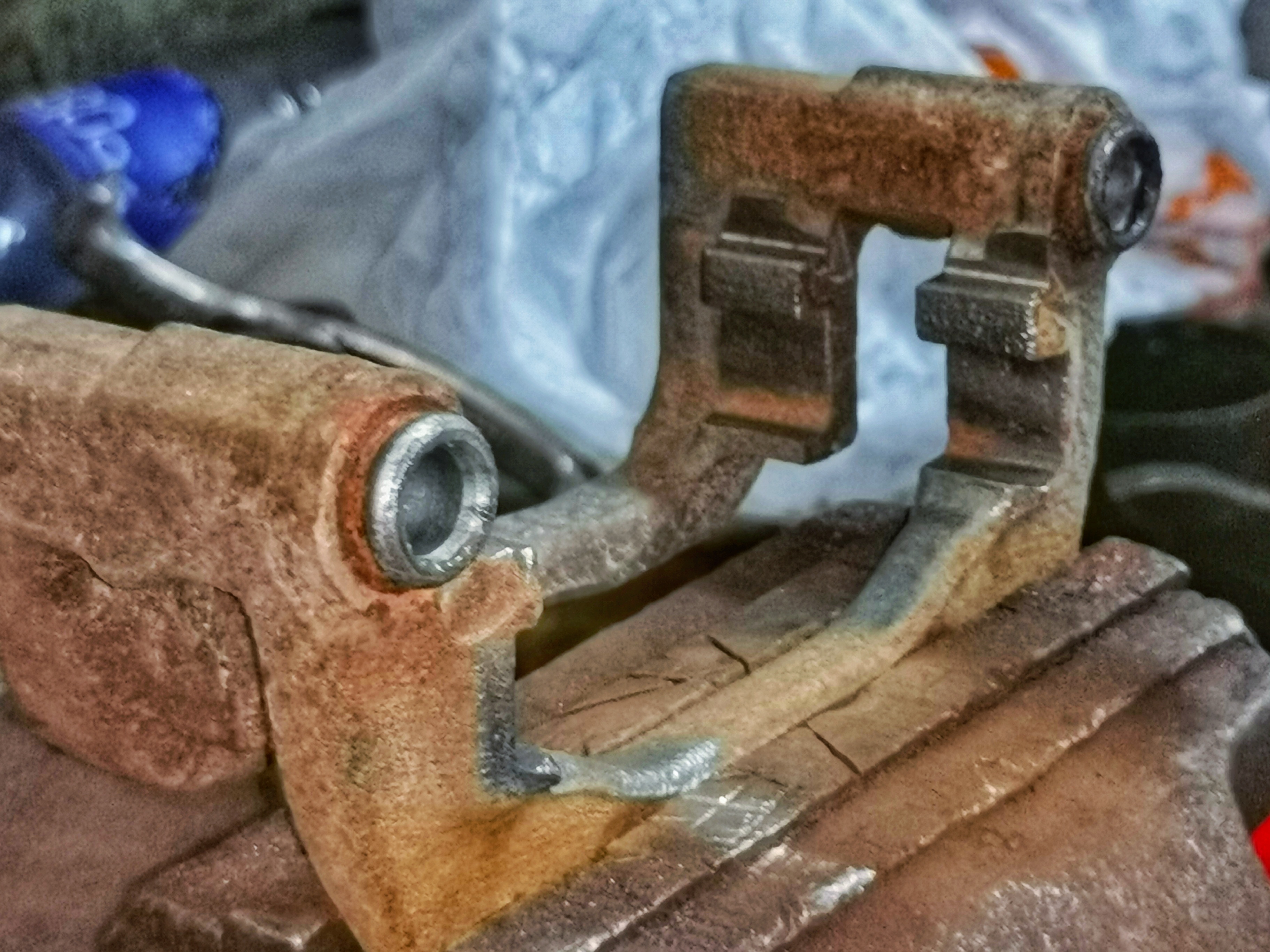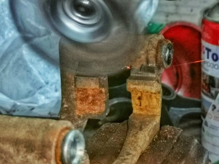 2. Чистка посадочных скобы суппорта. Шлифовка болгаркой + металлический ершик.