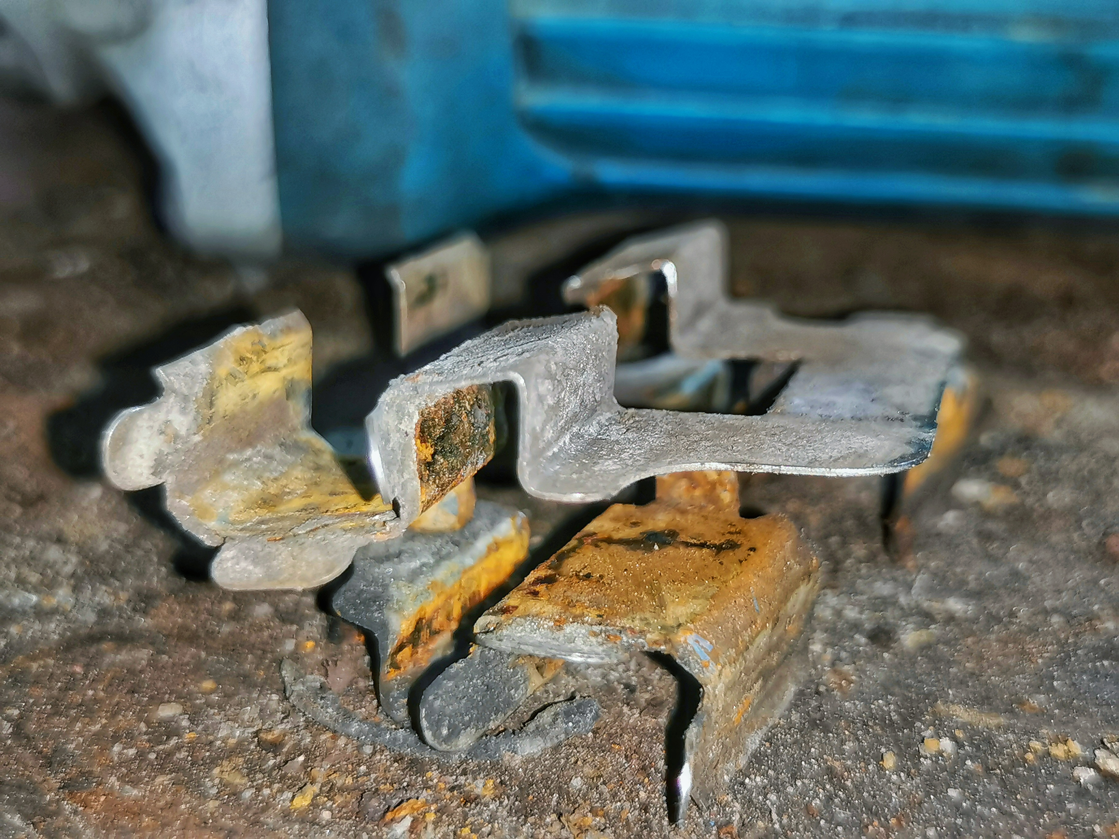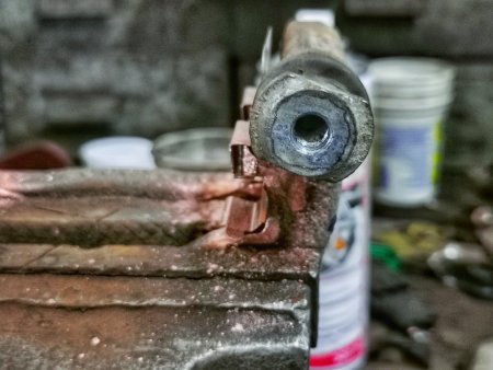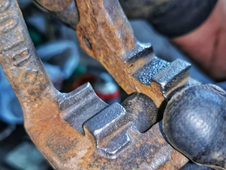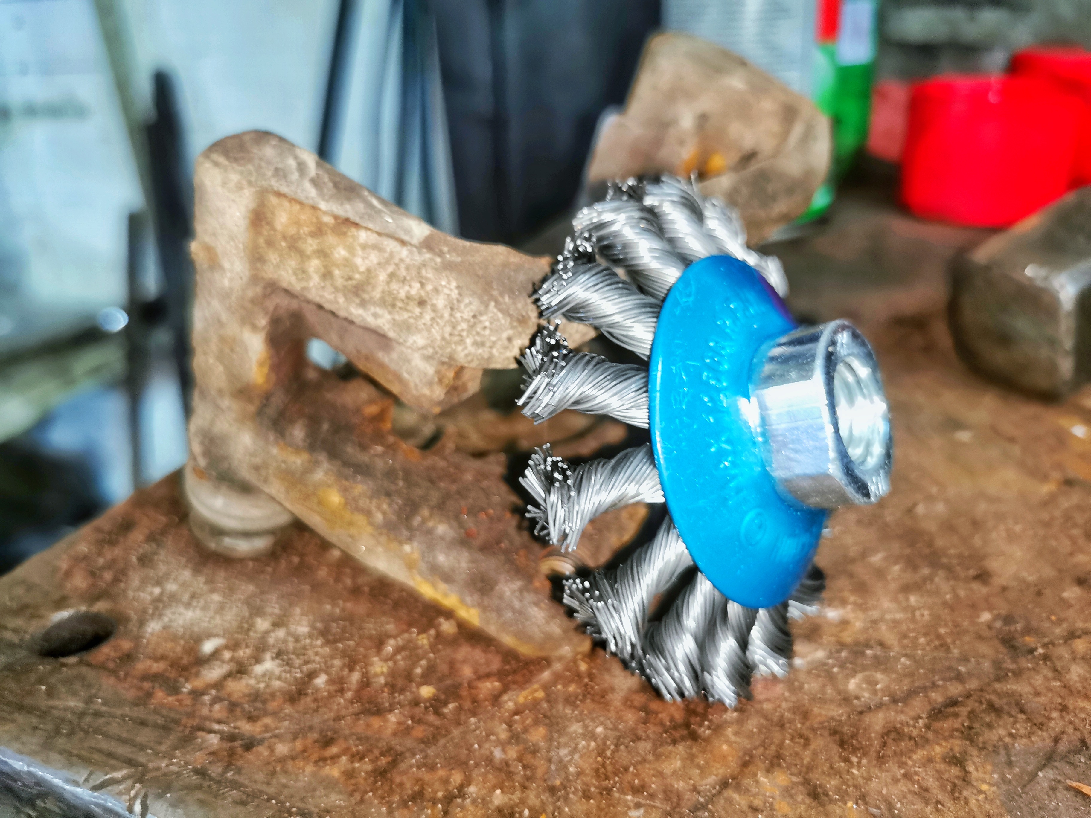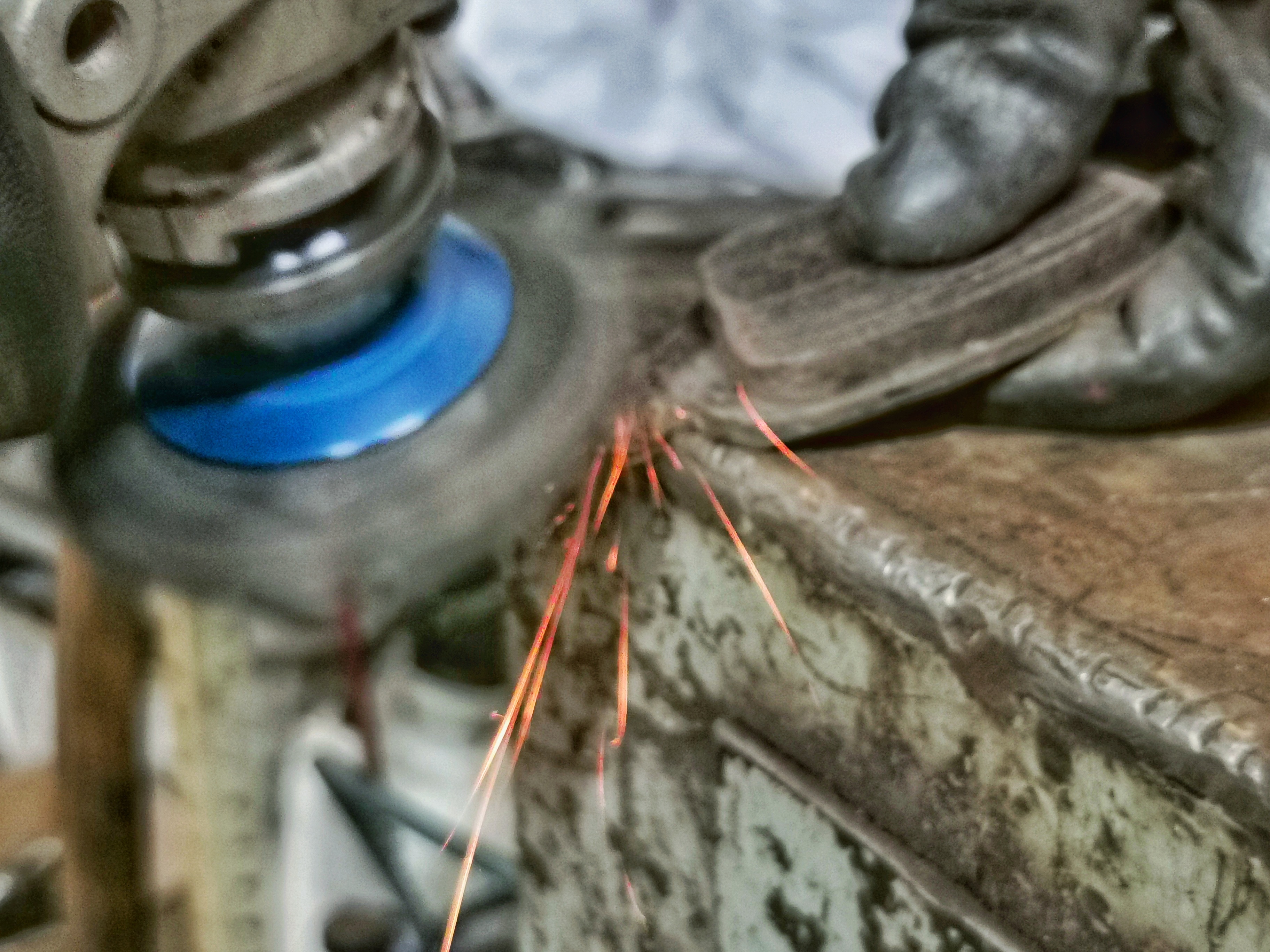 2. Чистка посадочных скобы суппорта. Шлифовка болгаркой + металлический ершик.
