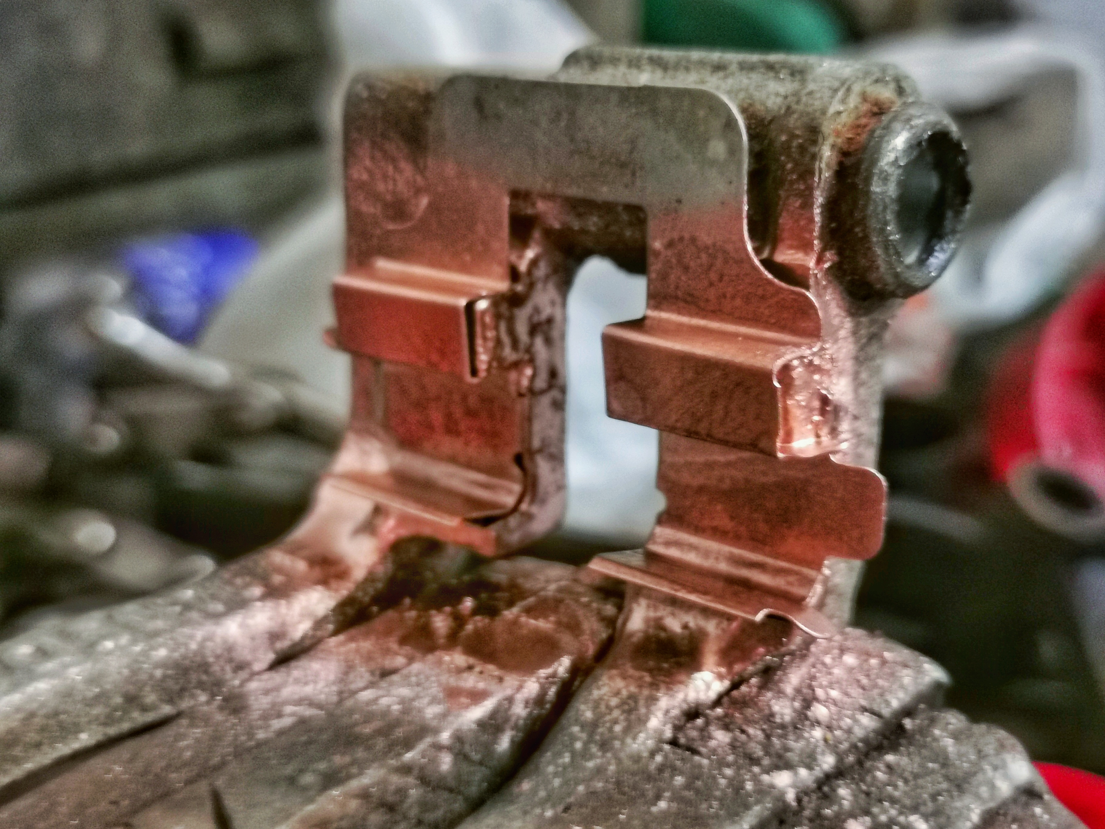 7. Чистка посадочных «усиков» колодки, смазывание медной смазкой. Саму рабочую поверхность колодки не смазывать!!!!