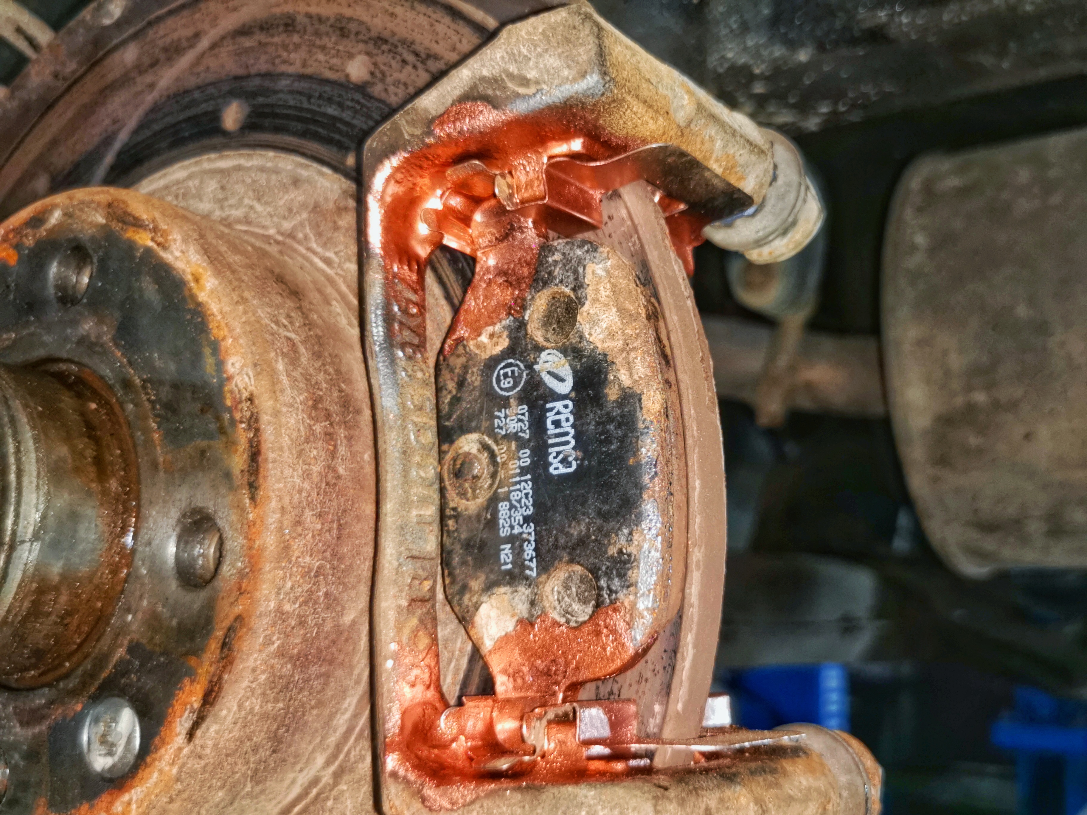 Это привело к заклиниванию суппорта, закореванию колодок.