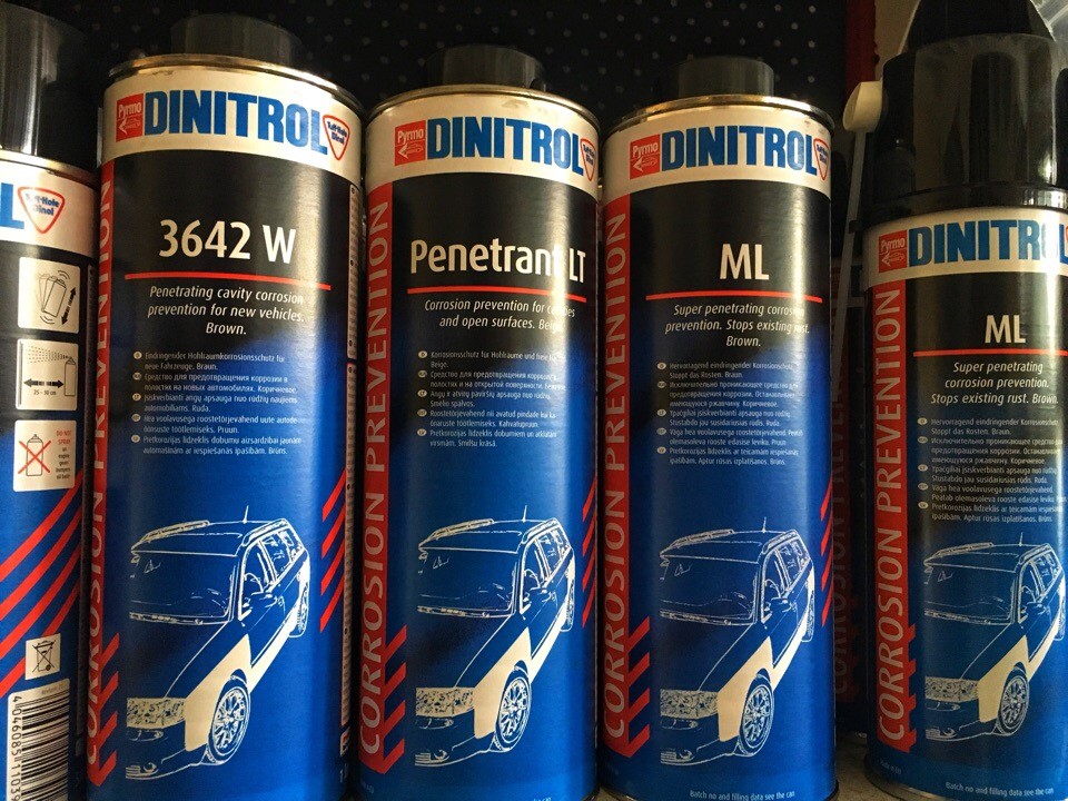 Dinitrol LT – высококачественный антикороррозионный материал, который обеспечивает исключительную защиту от коррозии. Это маслянисто-восковый состав, с содержанием ингибиторов коррозии. Применяется для обработки скрытых полостей и прилегающих открытых поверхностей (дверей, порогов и других элементов кузова). Практически не виден на кузове автомобиля, великолепно распыляется, образует в полостях антикоррозионный «туман». Все микротрещины, стоковые узлы, швы и др – заполняются антикоррозионным материалом. Dinitrol ML - для обработки кузова старых автомобилей, маслянисто-восковый состав. Имеет самое высокое содержание ингибиторов коррозии. Имеет самый высокий показатель по степени проницаемости сквозь покрытие ржавчины, среди других материалов.